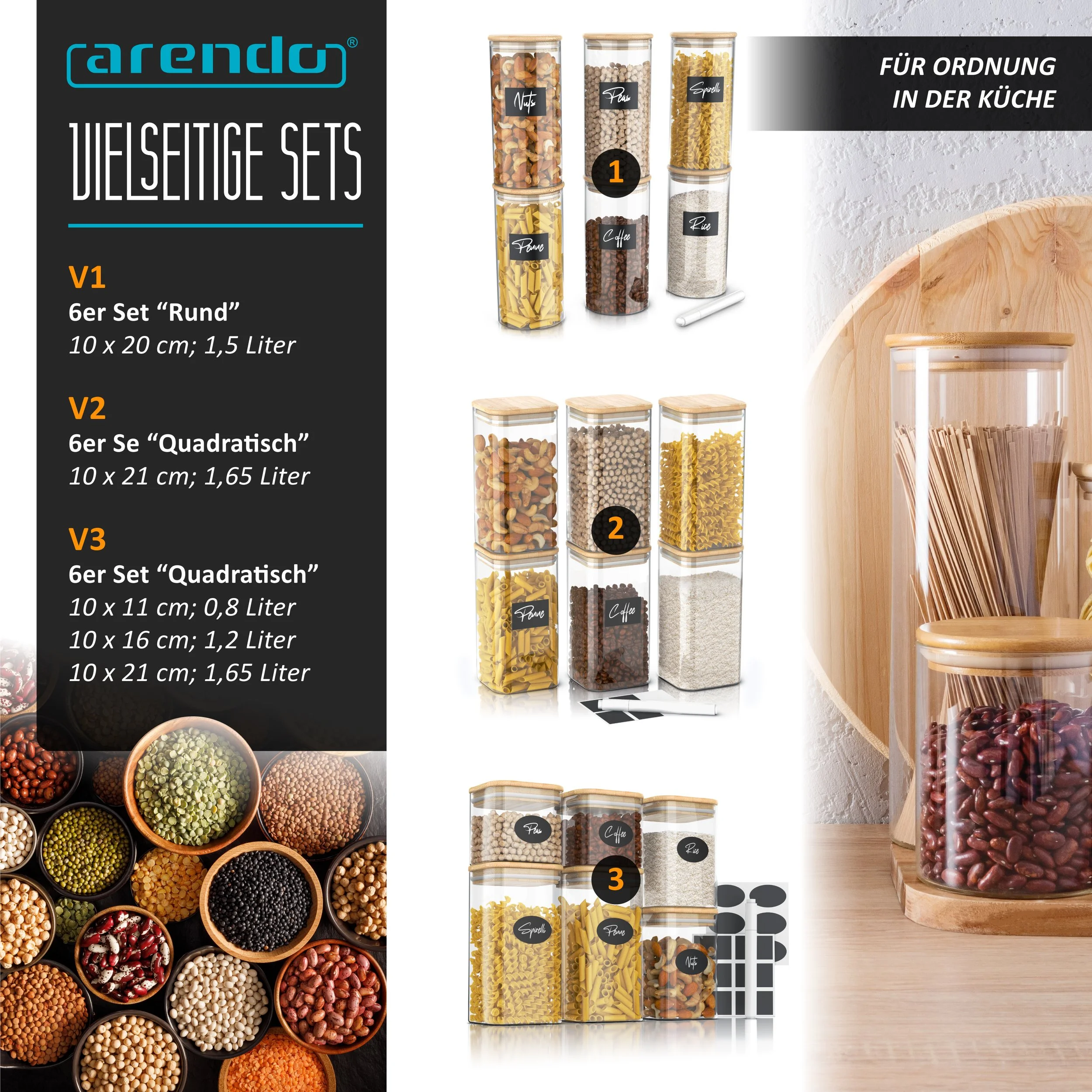 Hitzebeständig, langlebig, Spülmaschinen- und Mikrowellen- geeignet. Der Bambusdeckel mit Silikondichtring verschließt den Behälter luftdicht. Perfekt für die Aufbewahrung und zum Frischhalten von Lebensmitteln. Die Empfehlung für jede Küche: Lebensmittel bleiben frisch und geschmackvoll. Feuchtigkeit, Gerüche oder Schädlinge haben keine Chance – der Arendo Glasbehälter hält den Inhalt sicher verschlossen.