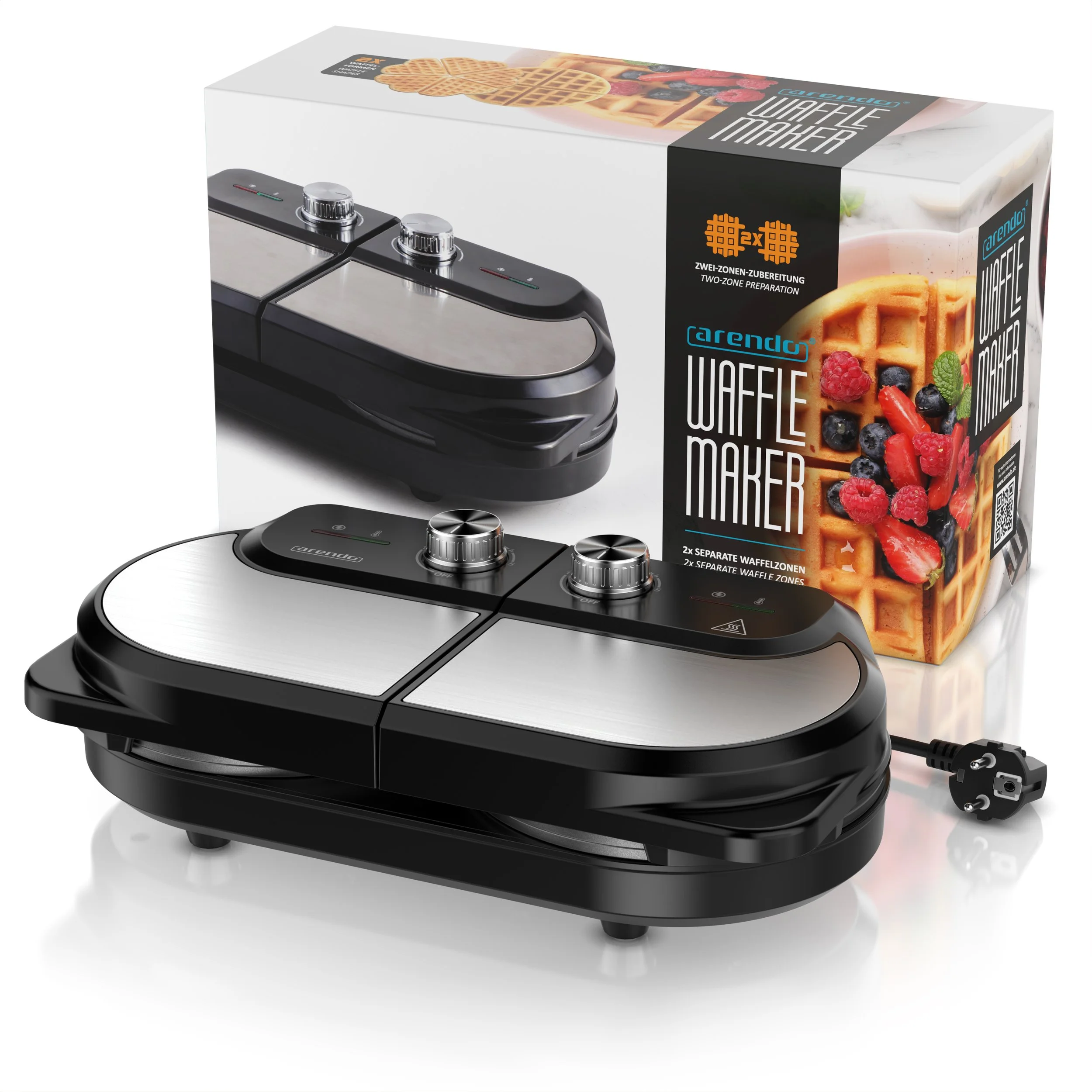Lassen Sie sich von köstlichen Waffeln zum Naschen verführen. Mit dem leistungsstarken 1400 Watt Modell von Arendo kann jeder das leckere Gebäck selbst zubereiten. Mit dem Waffeleisen gelingen Ihnen gleichzeitig eine herzförmige und eine belgische Waffel goldbraun gebacken. Die Backplatten mit einem Durchmesser von 15 cm sorgen für gleichmäßige Hitzeverteilung und perfekte Ergebnisse.