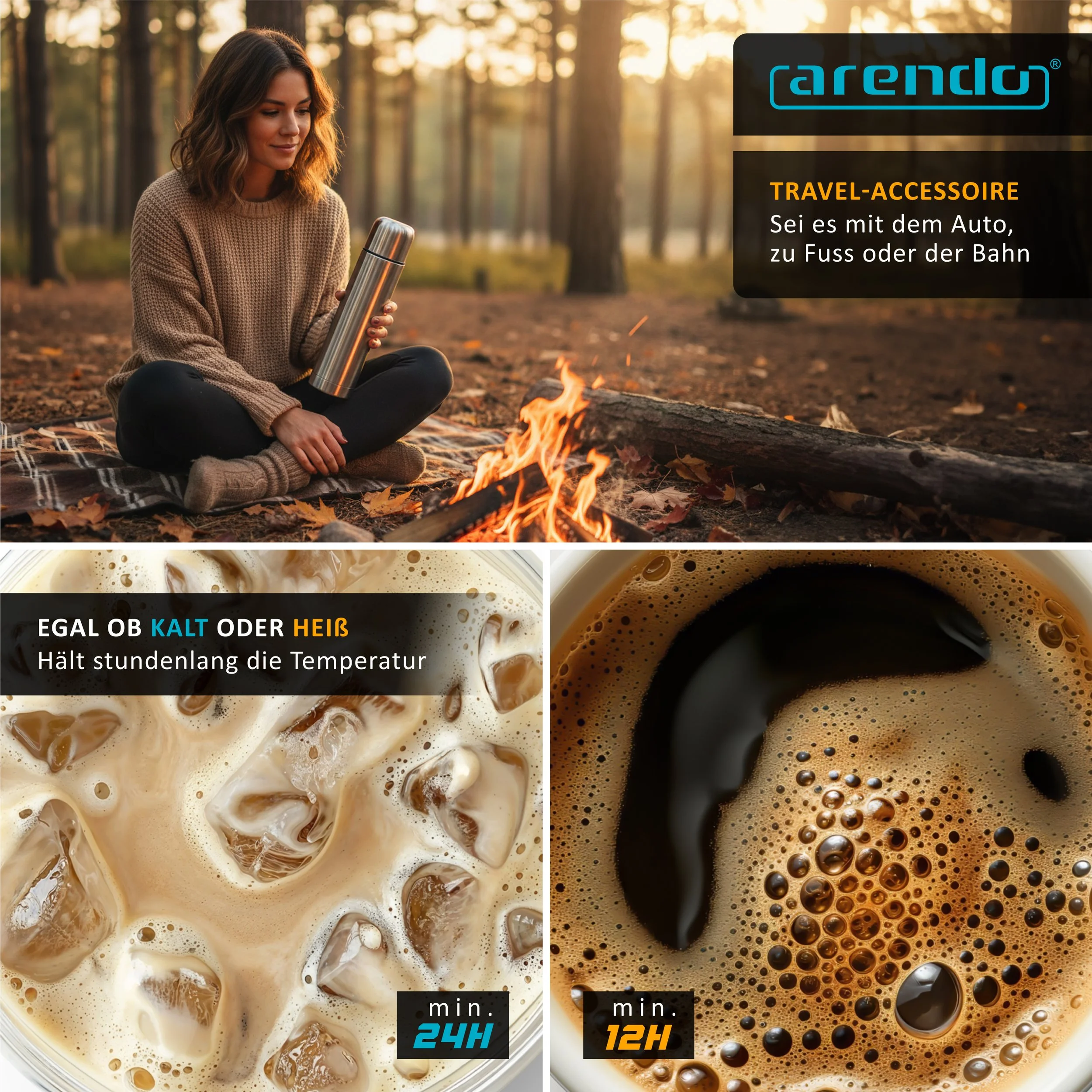 Mit der Thermo Isolierflasche 500 ml von Arendo hast Du immer das richtige Getränk in der richtigen Temperatur dabei. Eine kühle Erfrischung im Sommer und eine heiße Stärkung im Winter. Dank des fortschrittlichen Doppelwanddesigns bleiben Ihre Getränke 12 Stunden warm und 24 Stunden kalt.